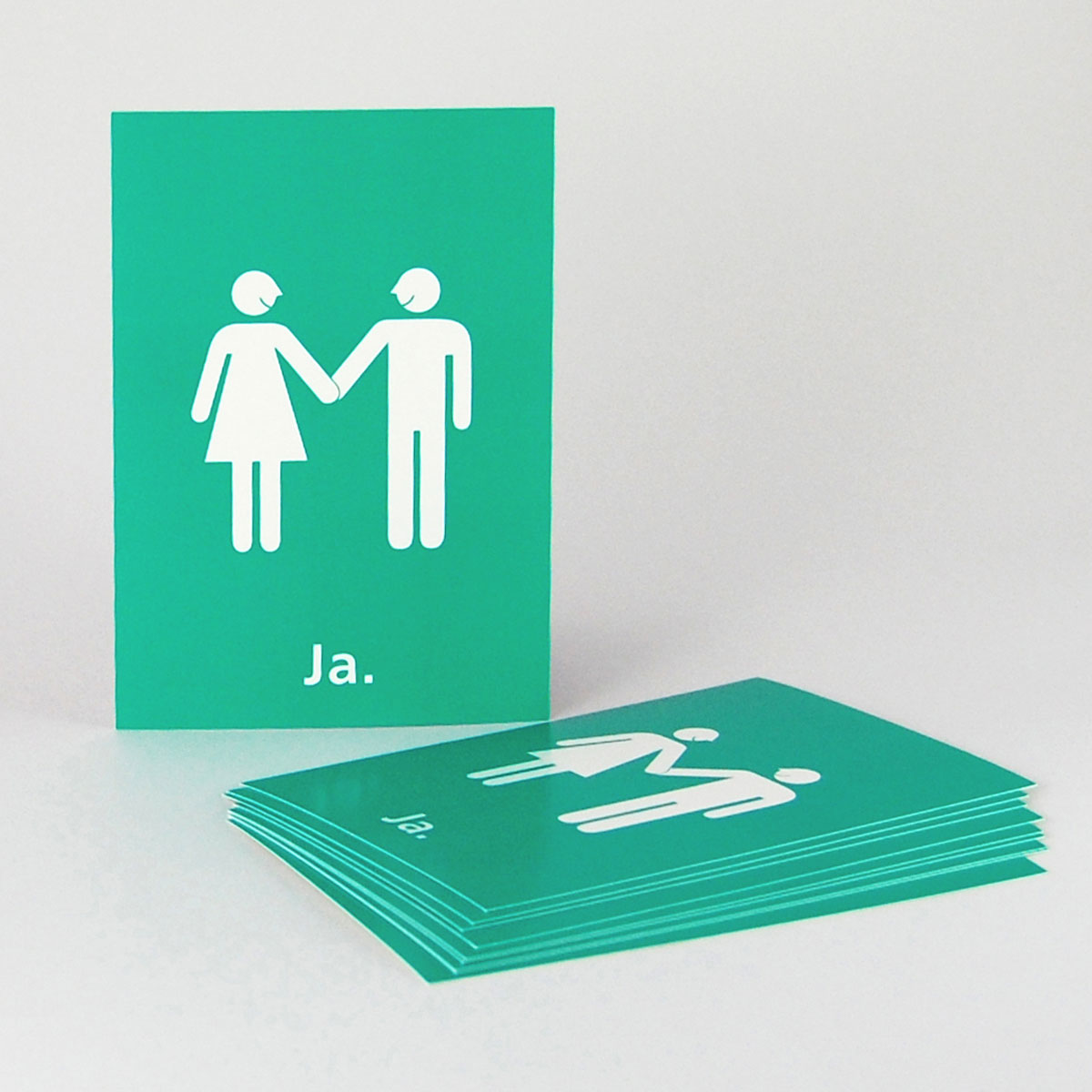 - 100 Postkarten: Hochformat DIN A6 (14,8 x 10,5 cm) - Material: Trucard 240 g/qm (Außenseite leicht glänzend, Innenseite matt) - grüner Offsetdruck 1/0 (HKS 53) - eine Postkarte wiegt knapp 4 Gramm