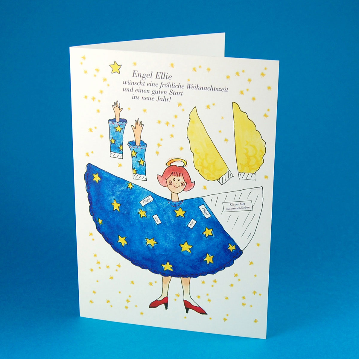 Große Weihnachtskarten mit einem Bastelbogen für einen sympathischen Weihnachts-Engel.