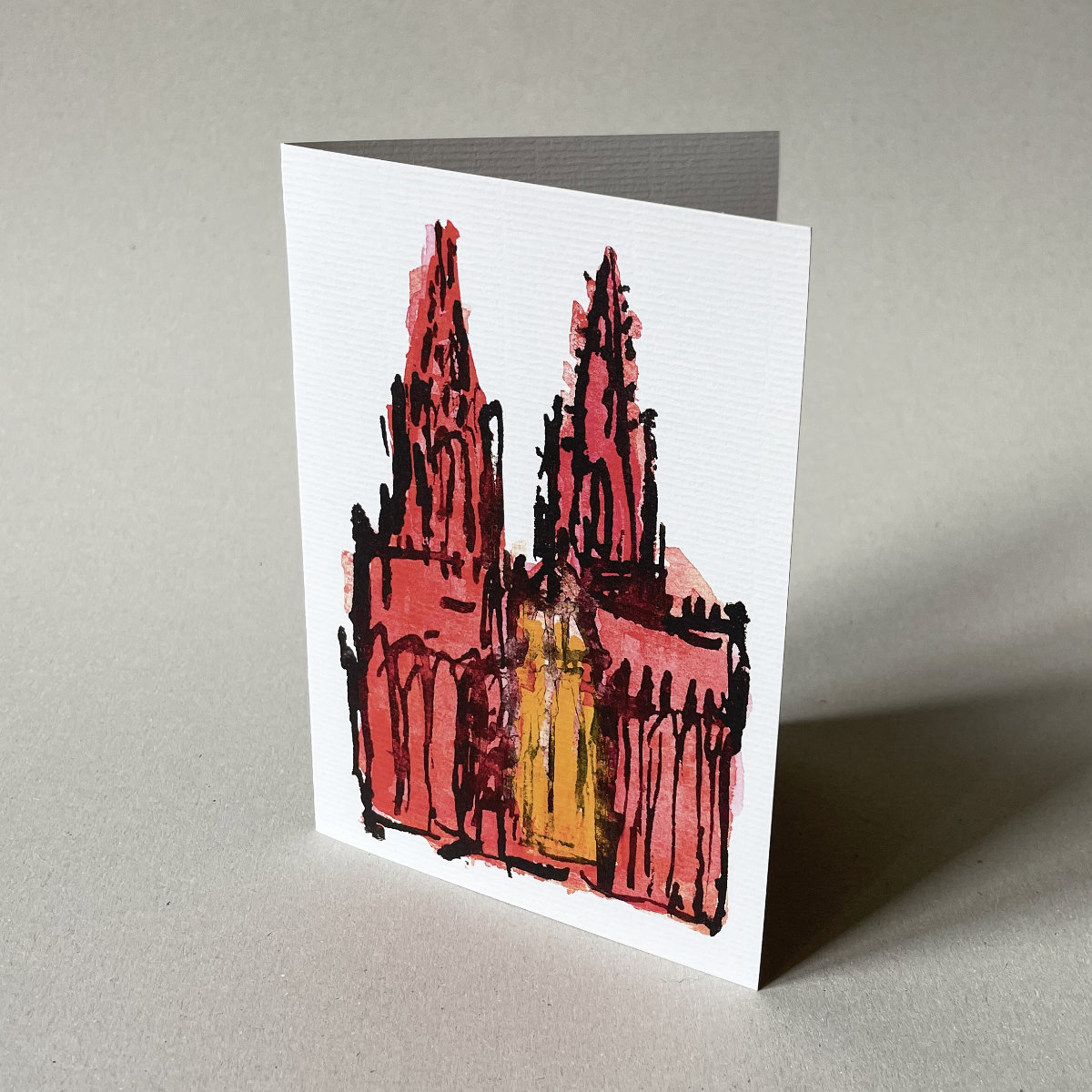 Hochwertige Karten für Glückwünsche oder einen kurzen Gruß. Edler, strukturierter Karton bedruckt mit einem skizzenhaften Aquarell des Kölner Doms.