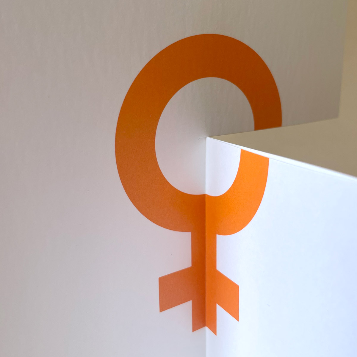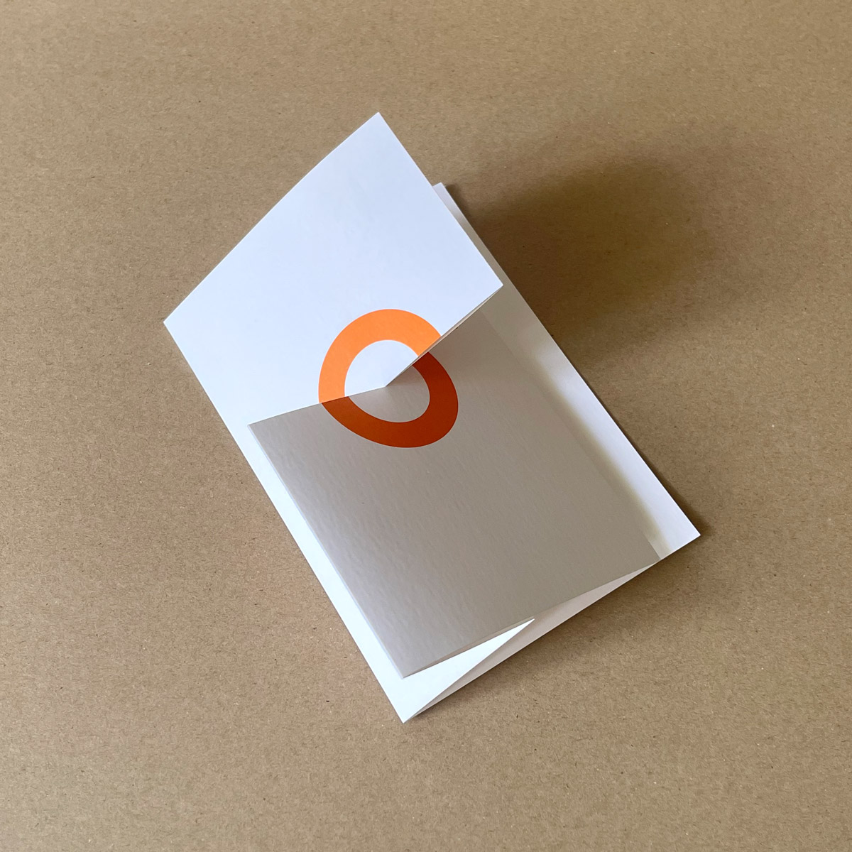 - oranger Offsetdruck (HKS 7) auf mattem, weißen Elfenbeinkarton 246 g/qm