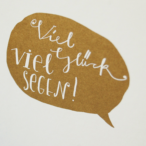 Recycling-Glückwunschkarten mit goldenen Umschlägen, Handlettering: Marie Geißler