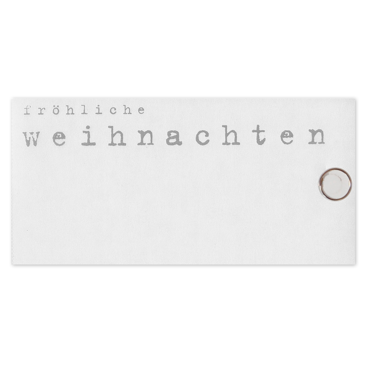 Da wir die Klammern noch einstecken müssen, dauert der Versand evtl. etwas länger. Falls Sie die Karten noch bedrucken wollen: einfach Bescheid geben, dann liefern wir die Klammern lose.