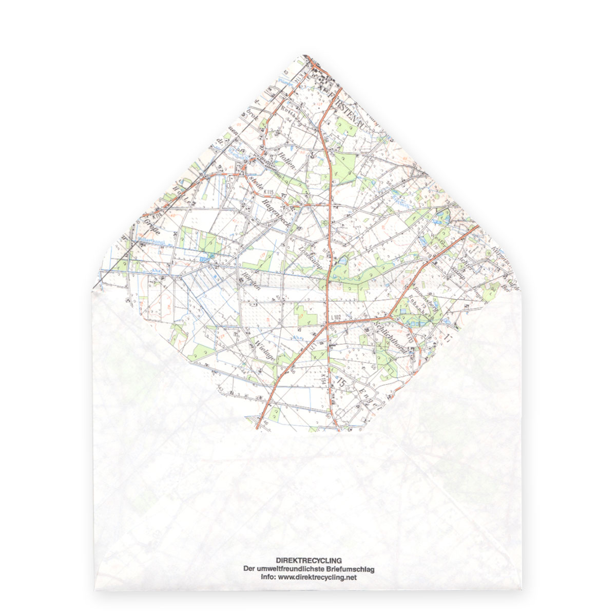 - 10 naturweiße Direkt-Recyclingumschläge DIN C6, spitze Klappe nassklebend (Upcycling nicht mehr benötigter Landkarten)