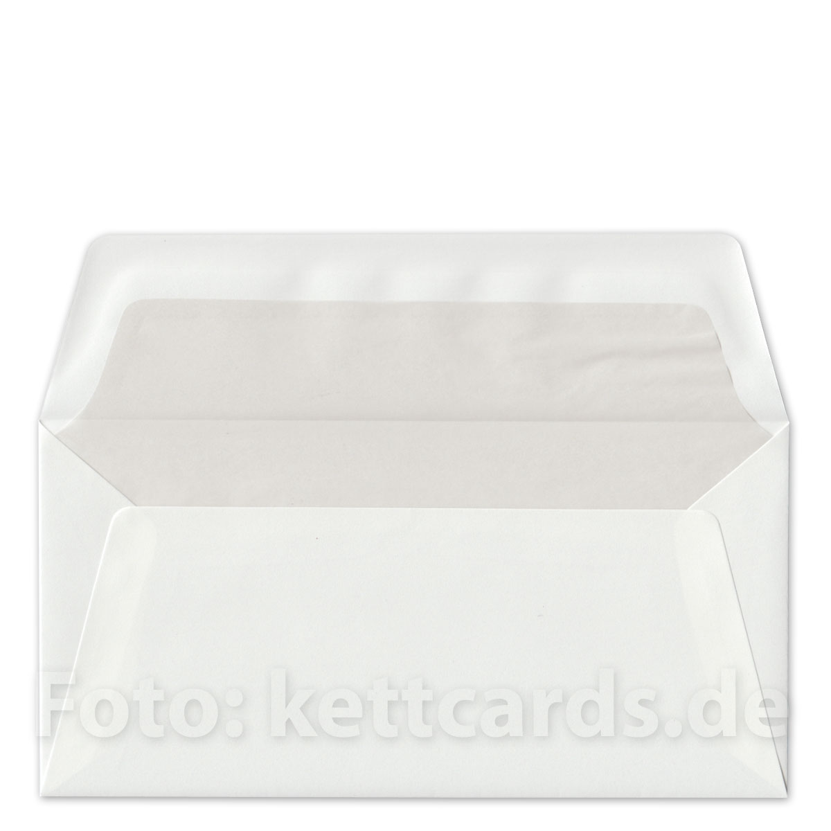 - 10 edle Umschläge DL, breite Klappe nassklebend, naturweißes Papier + hellgraues Seidenfutter