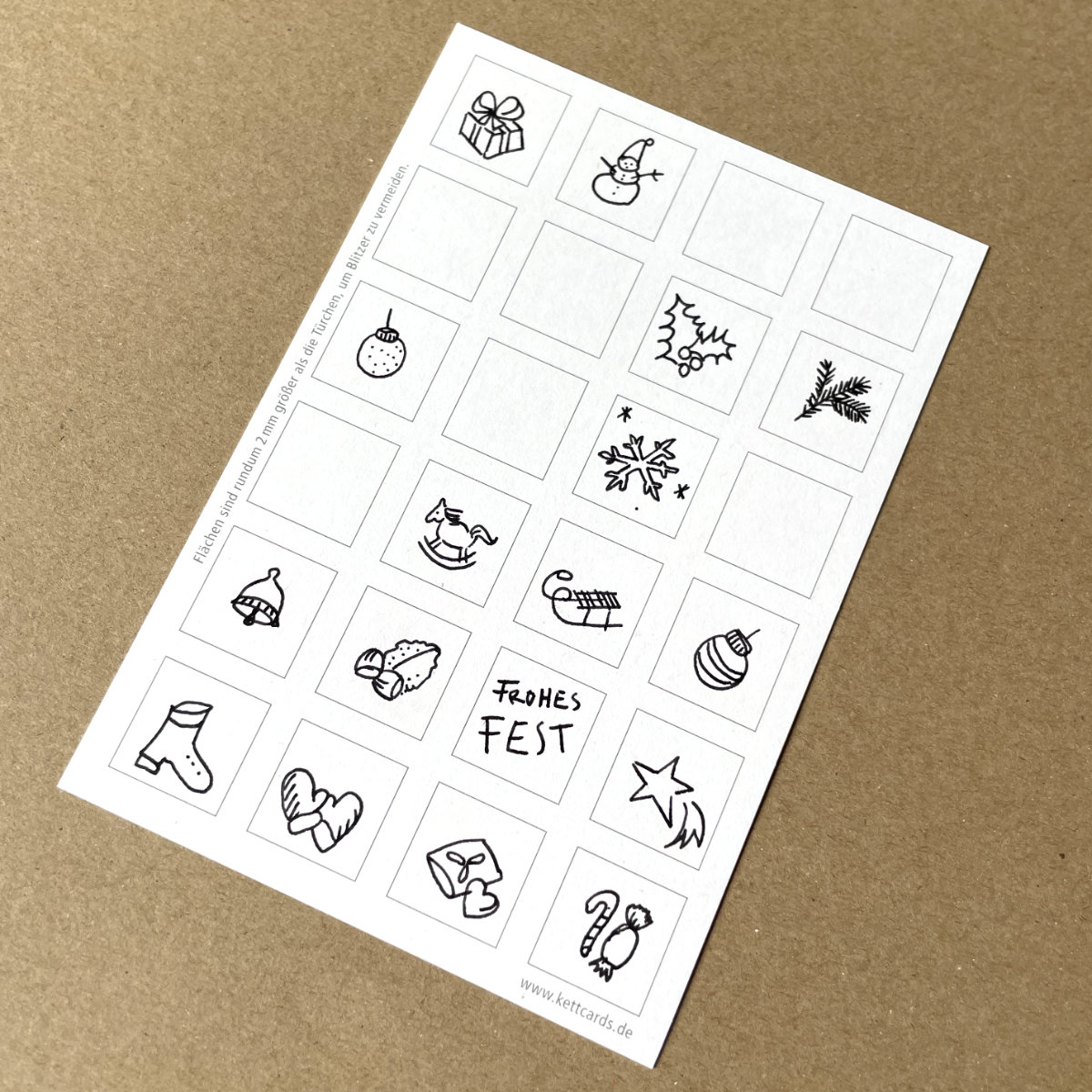 20er Set Recycling-Adventskalender DIN B6, Vorder- und Rückseiten