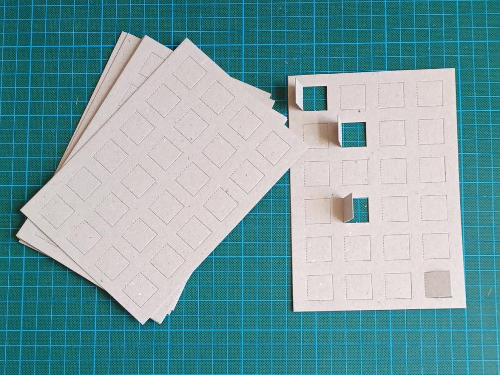 Das Material lässt sich gut beschreiben und bemalen (ist allerdings grau ...). Für die Bilder hinter den Fenster einfach ein Blatt nehmen.