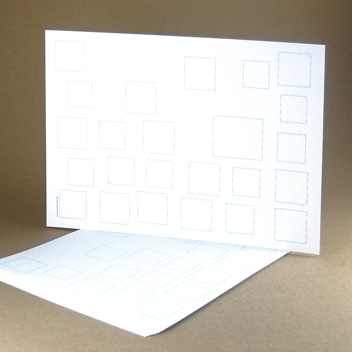 Ein Hinweis zum zweiten Foto: die schwarzen Zeichnungen sind nur Beispiele. Die Bogen werden nur mit den blauen Rechtecken bedruckt geliefert!