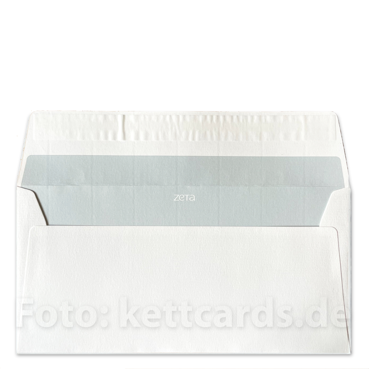 - Material: naturweißes, geripptes Papier (Zeta gerippt natur 120 g/qm) mit hellgrauem Innendruck
