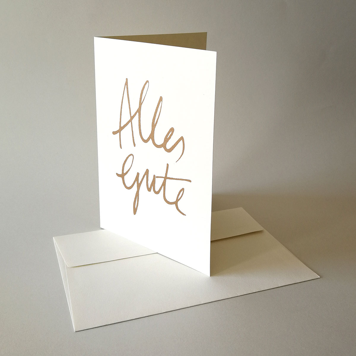 Gold gedruckter, schwungvoller Schriftzug auf cremeweißem Recyclingkarton. Schöne Karte für Glückwünsche zum Geburtstag, zu Kommunion und Konfirmation oder Jugendweihe, einen neuen Lebensabschnitt ...