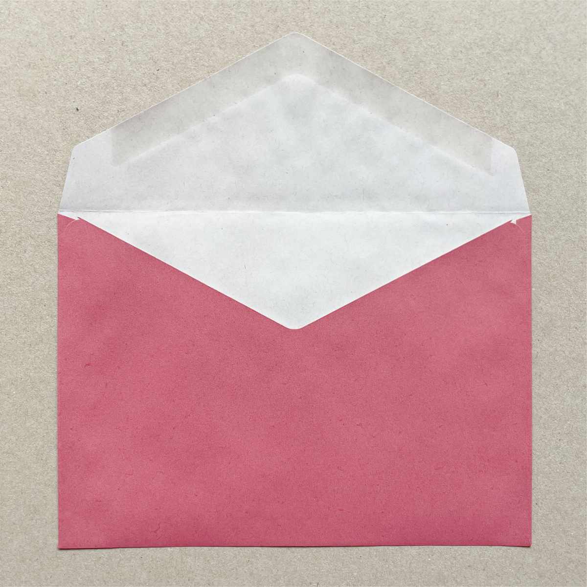 - rote Kuvertierhülle DIN C6, stumpfe Klappe nassklebend, rot bedrucktes Recyclingpapier 75 g/qm