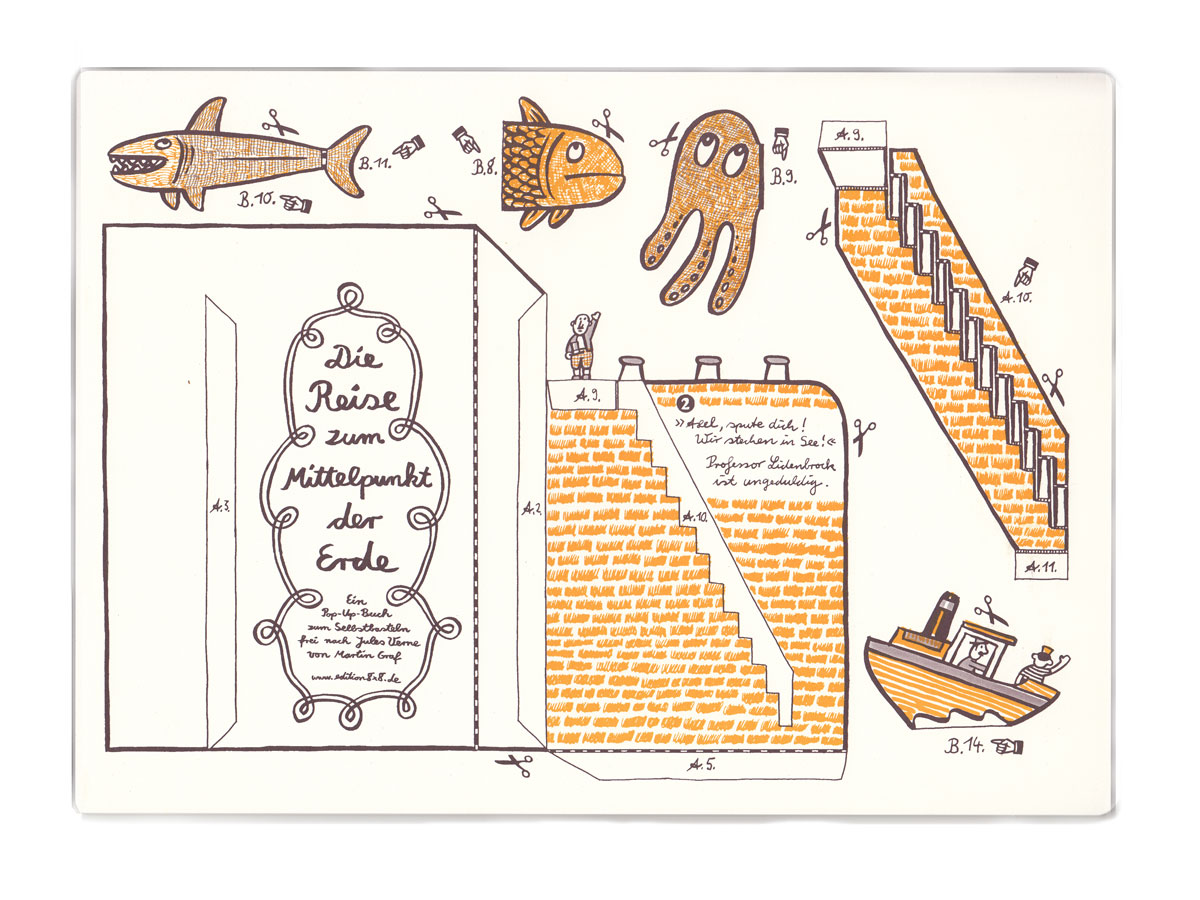 Ein Pop-Up-Buch zum Selberbasteln frei nach Jules Verne: Begleiten Sie Professor Lidenbrock und seinen Neffen Axel auf ihrer gefährlichen Reise zum Mittelpunkt der Erde! Von Hamburg geht es nach Island, durch die geheimnisvollen Tiefen der Erde, vorbei an wilden Kreaturen, durch den Vesuv wieder hinauf ans Tageslicht und auf dem Seeweg zurück. Natürlich dürfen ein paar Kugeln Stracciatella für die Heimfahrt nicht fehlen, man gönnt sich ja sonst nichts ...