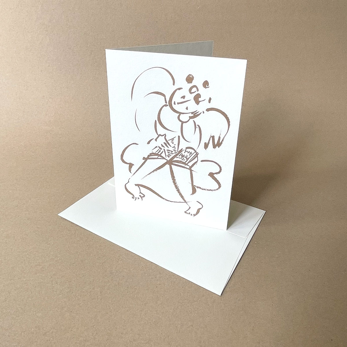 Weihnachtskarte mit gleichfarbigem Recycling-Umschlag; Zeichnung: Karin-Irina Willberg