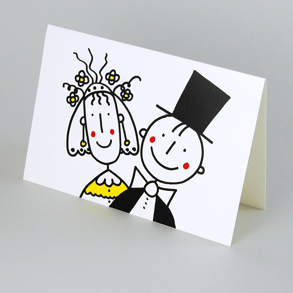 Hochzeitskarte mit gelbem Umschlag, Illustration: Franz Basdera