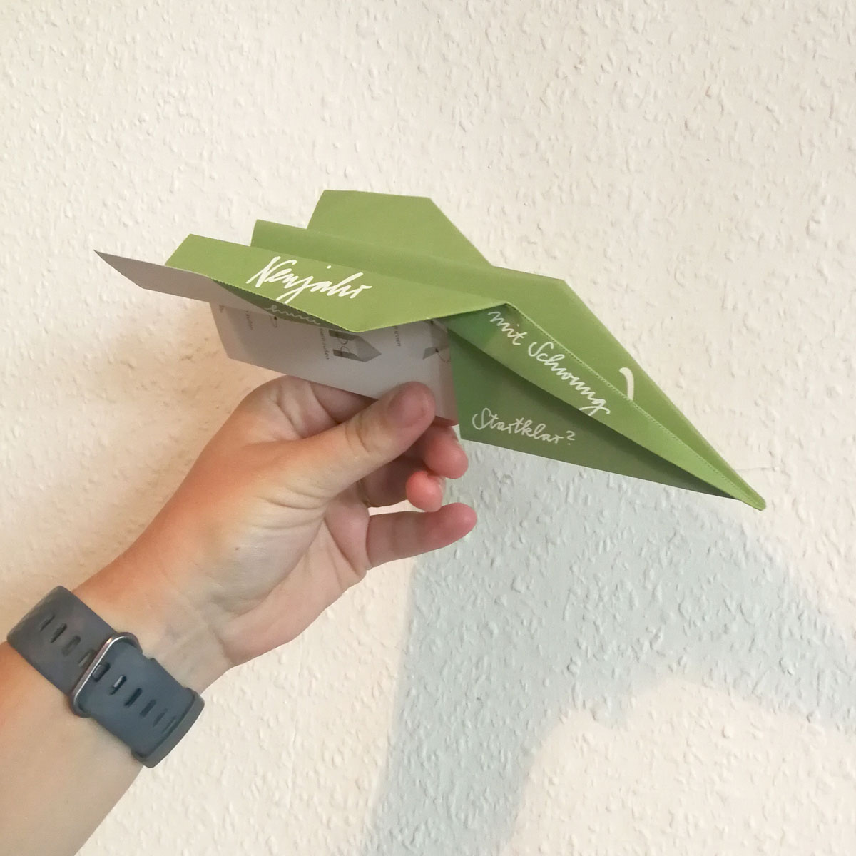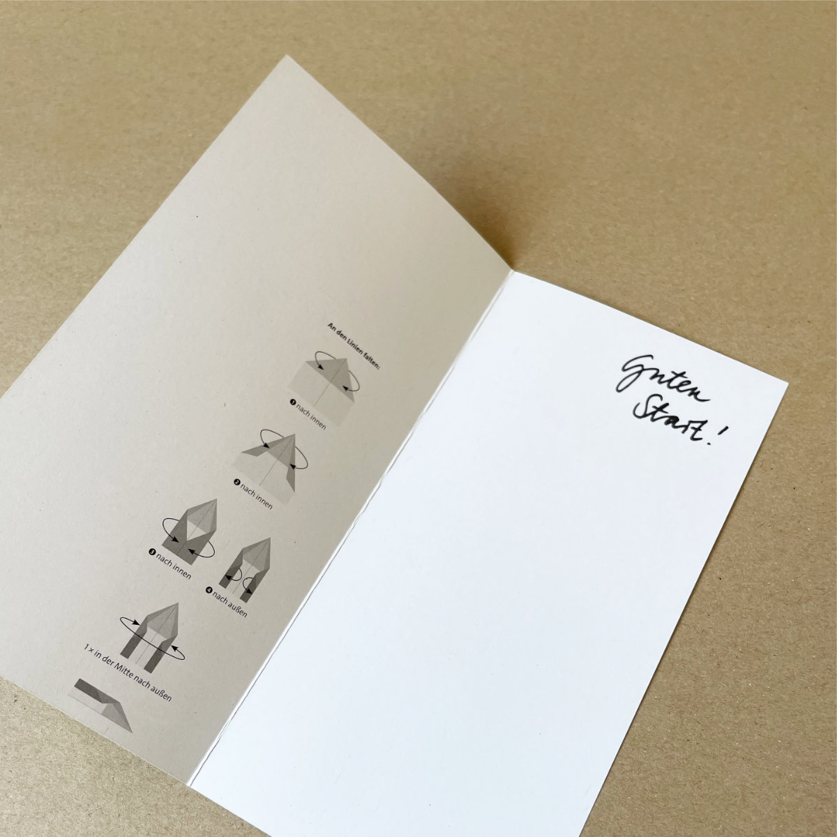 So funktioniert’s: Papierflieger-Anleitung auf der Innenseite: Direkt in der Karte angebracht – kinderleicht nachfaltbar