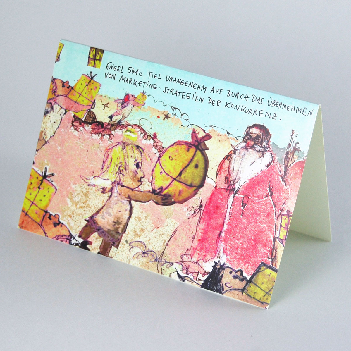 Karte für Weihnachts- und Ostergrüße: Engelchen mit Osterei