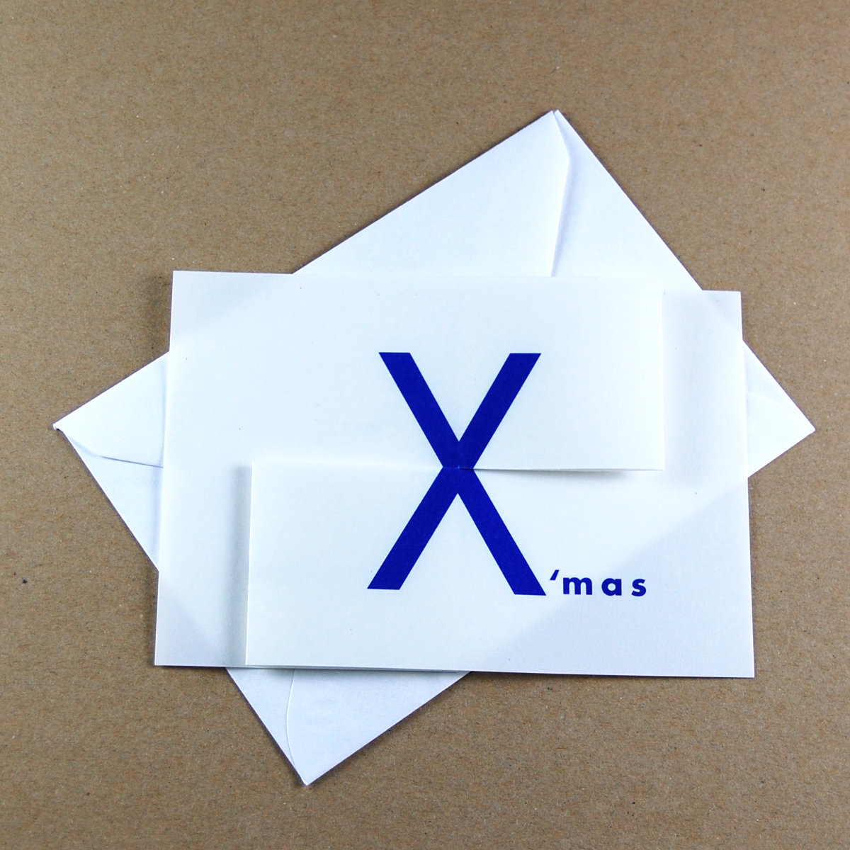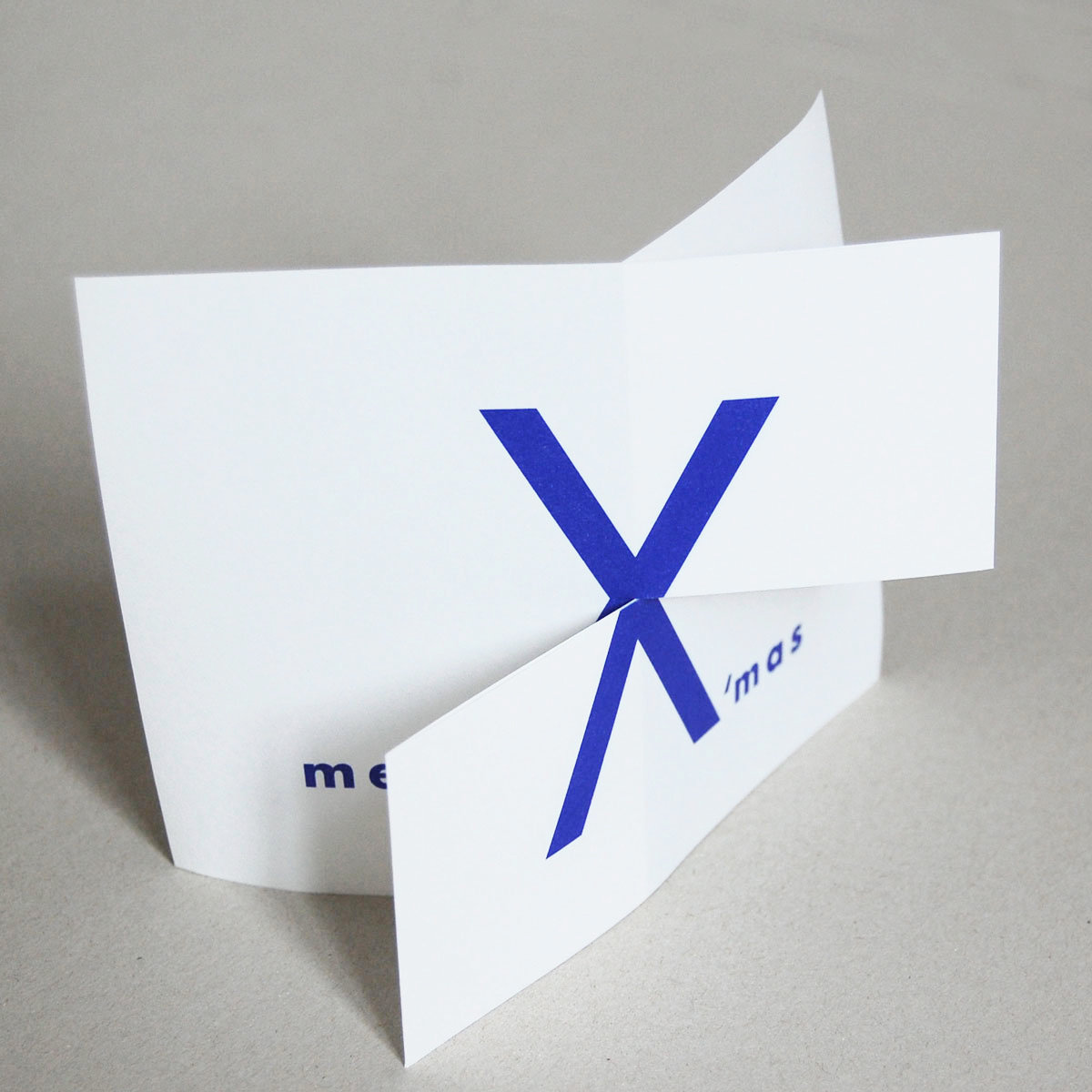 Ausgefallene Weihnachtsgrüße auch für den internationalen Versand geeignet: beim Auseinanderziehen der Karte wird aus X´mas ein merry X´mas.