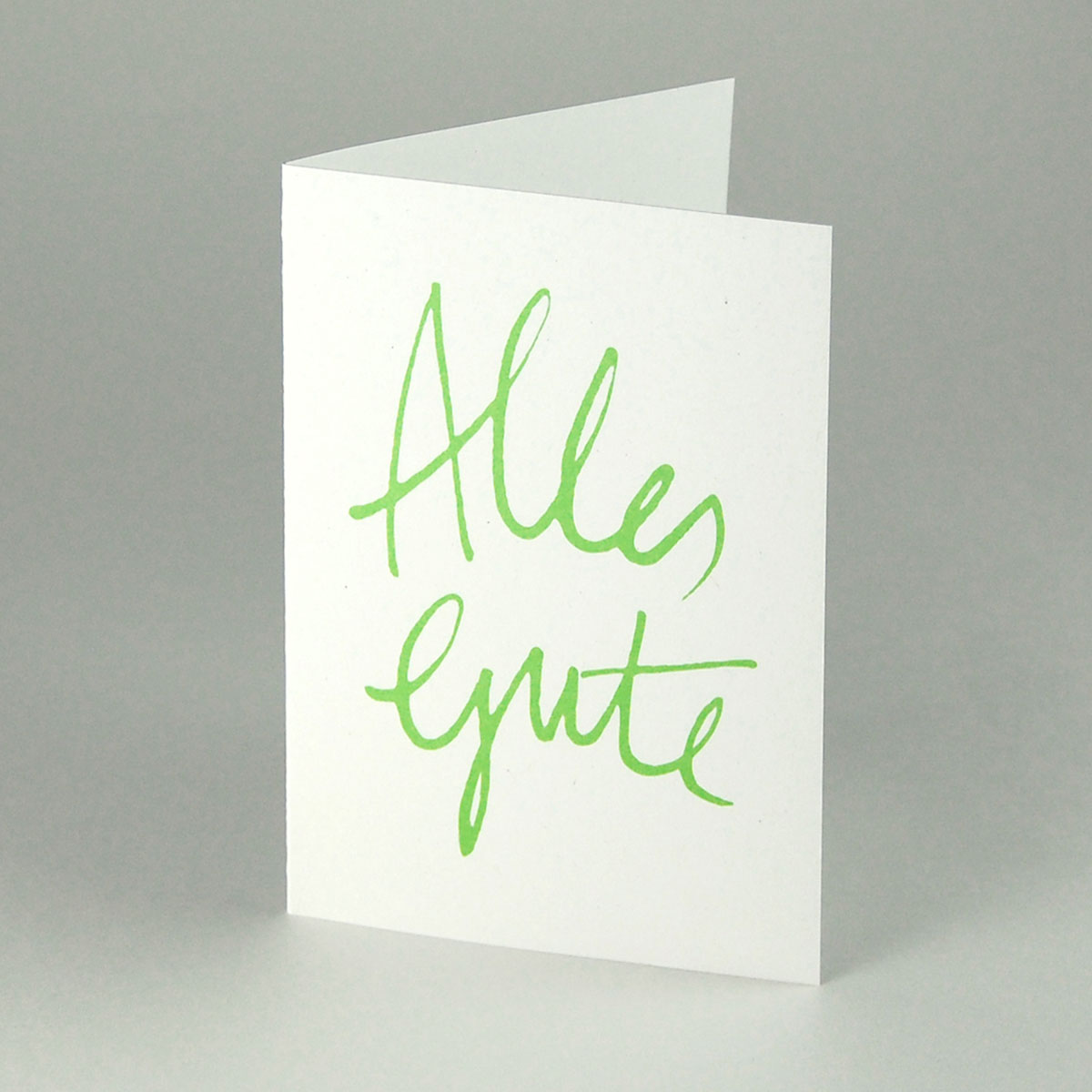 Schwungvoller Schriftzug. Schöne, schlichte Karte, die absolut zeitlos, zeitgemäß und frisch. Glückwünsche für den Geburtstag, Kommunion, Konfirmation oder Jugendweihe, einen neuen Lebensabschnitt, für ein Hochzeitspaar oder den St. Patrick´s Day. In hellem Grün gedruckt auf stabilem weißem Recycling-Karton.