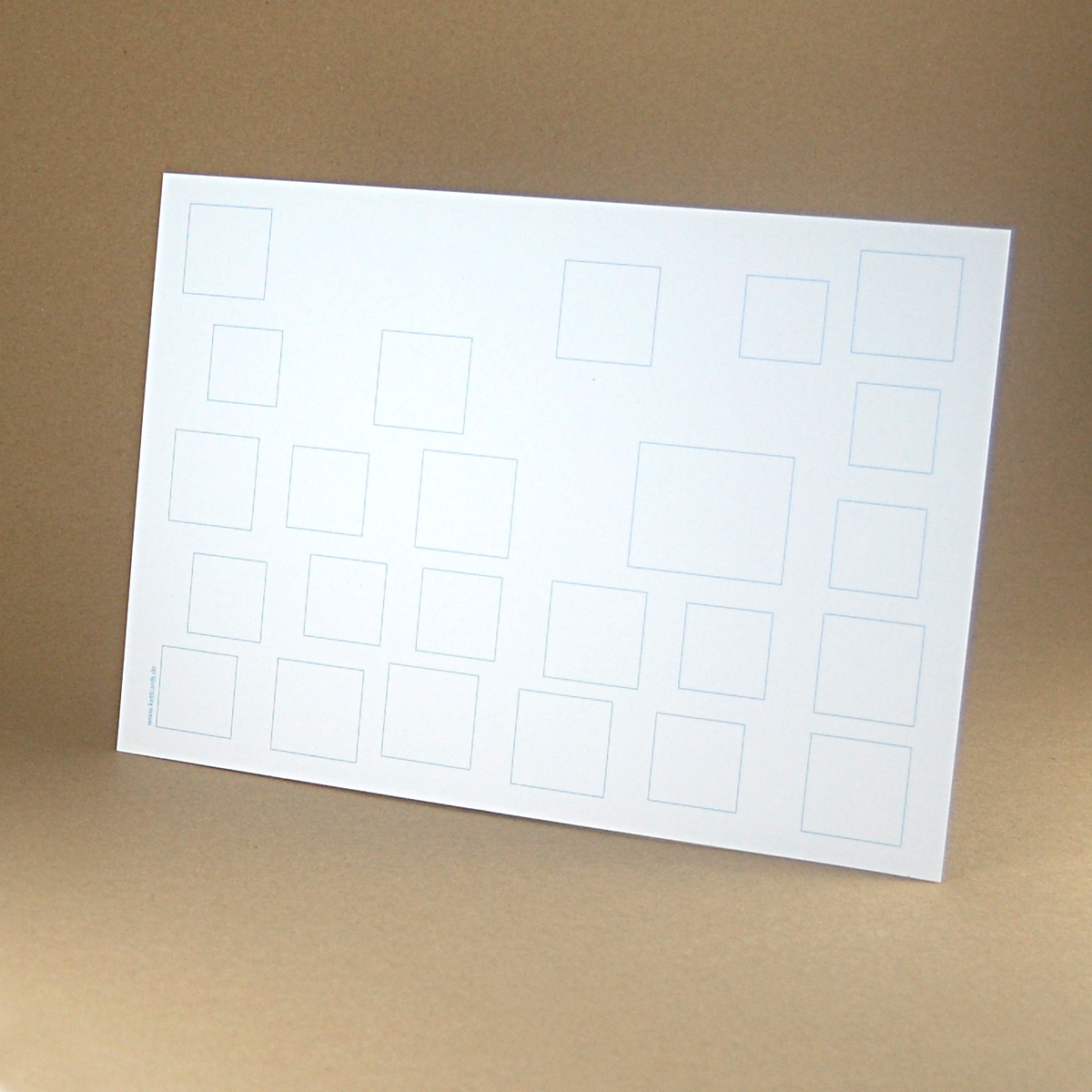 Ein Hinweis zum zweiten Foto: die schwarzen Zeichnungen sind nur Beispiele. Die Bogen werden nur mit den blauen Rechtecken bedruckt geliefert!