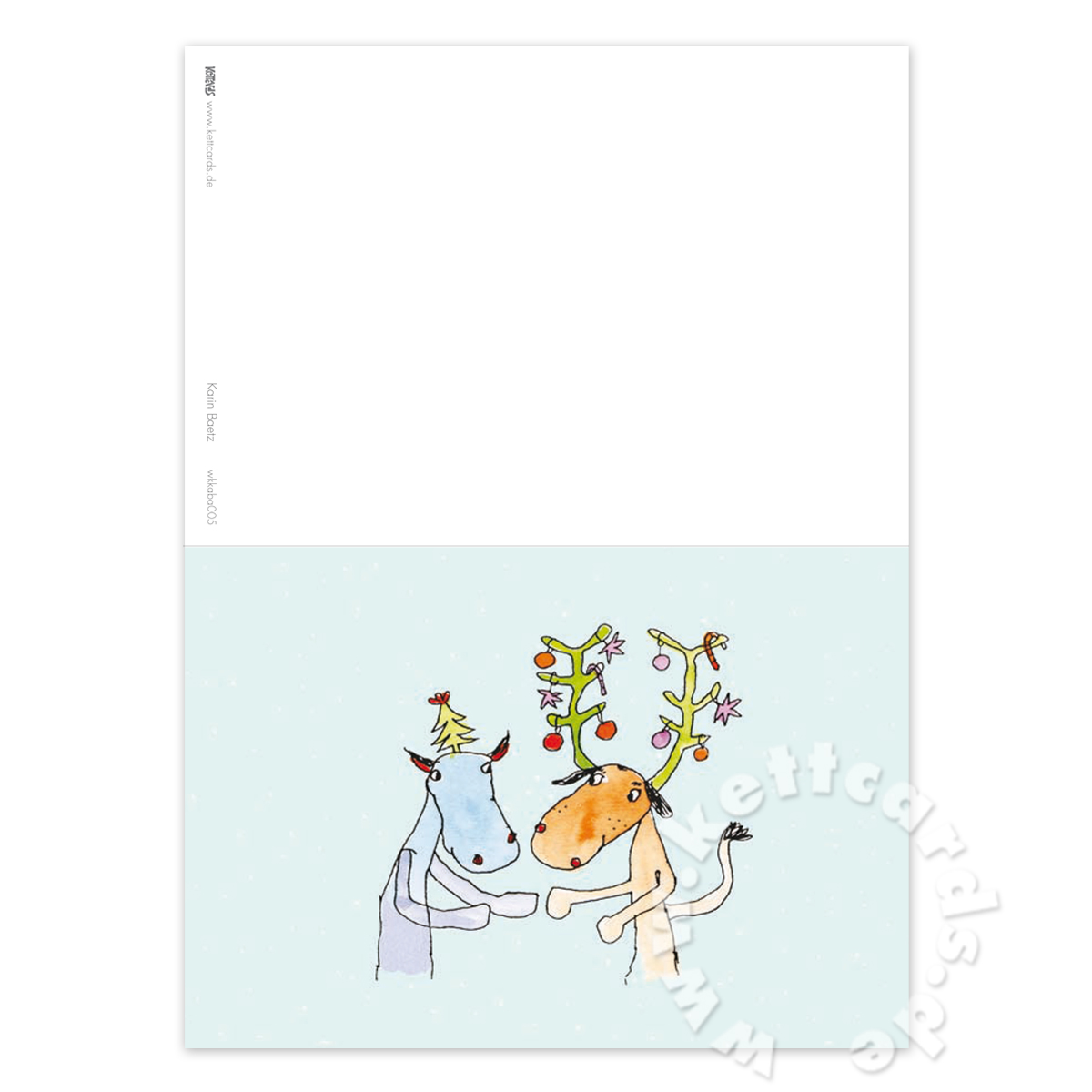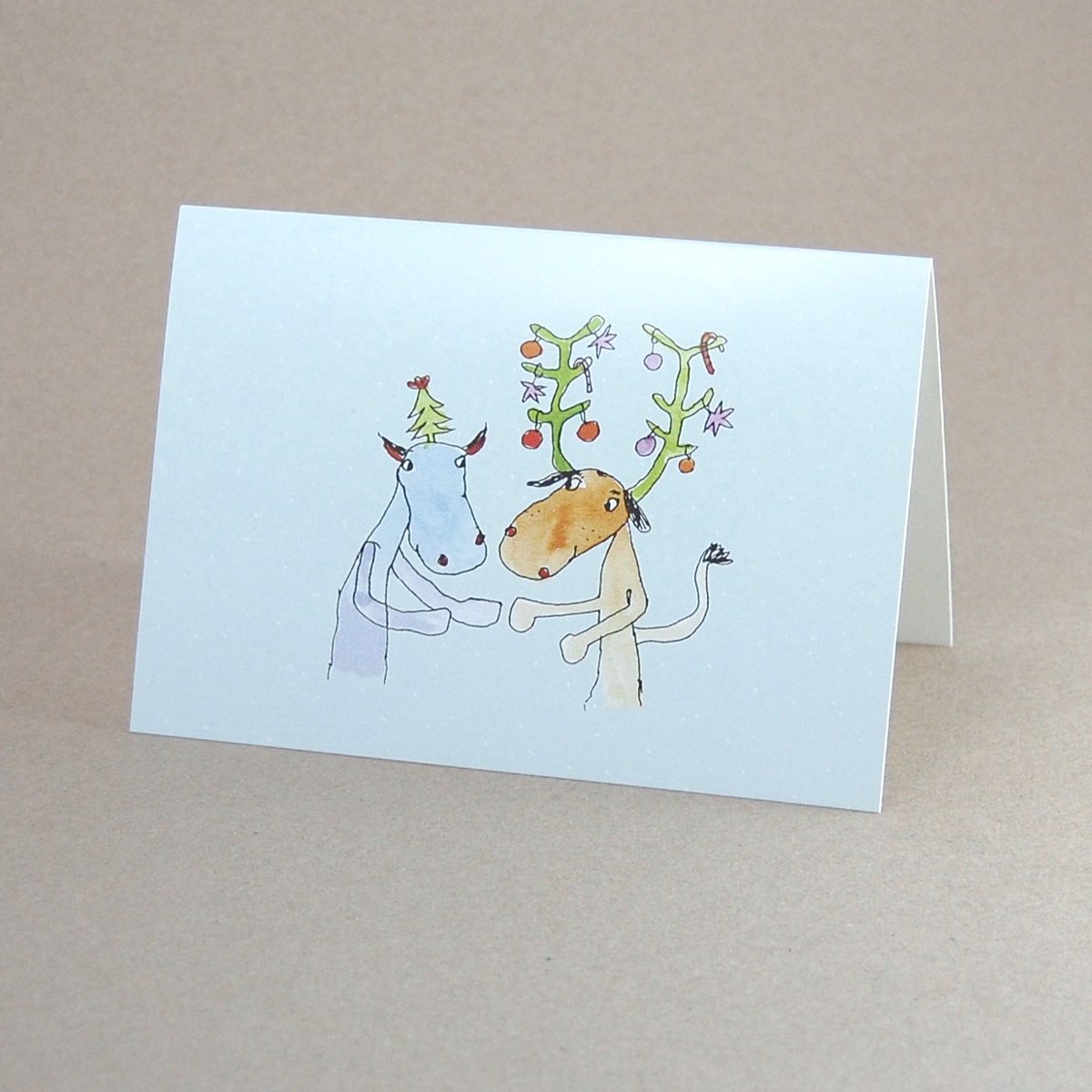 Zwei festlich geschmückte Tierköpfe: Hund? Pferd? Rentier? Hirsch? Unwichtig! Wichtig ist, dass sie sich die Hand geben!