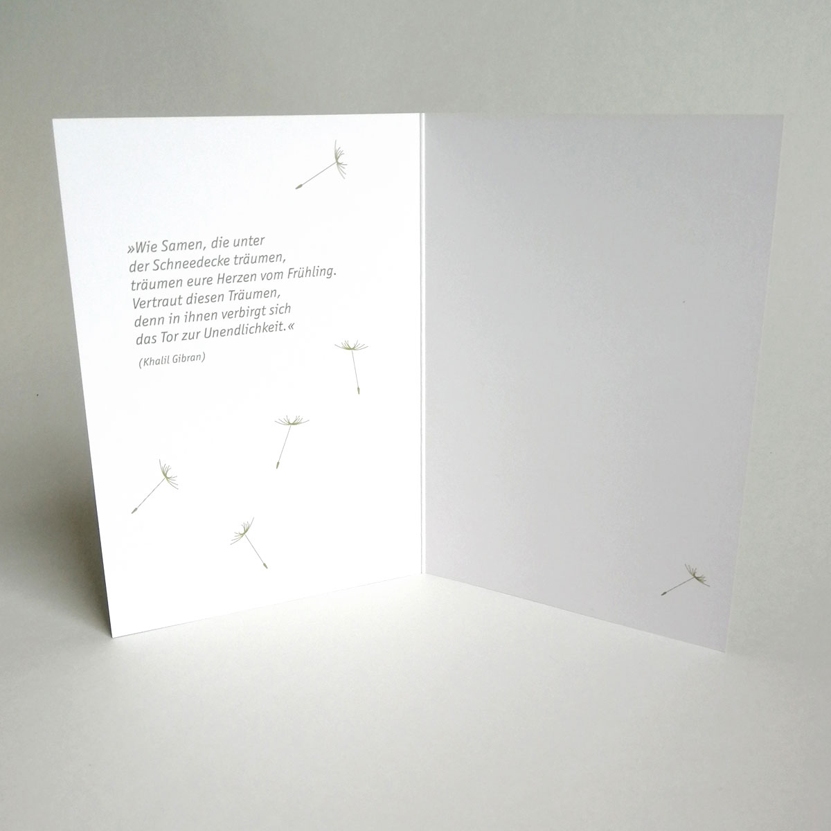 Auf der linken Innenseite der Karte ist ein Gedicht von Khalil Gibran abgedruckt: